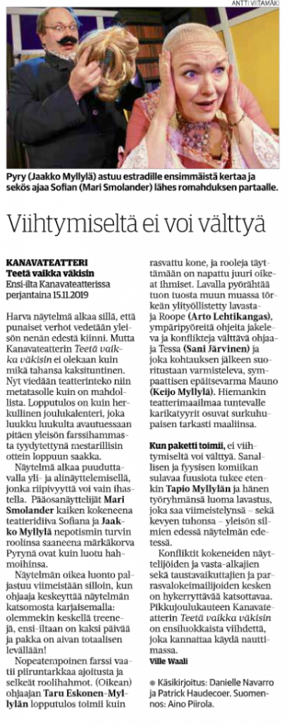 Kanavateatterin pikkujoulunäytelmä tuo lavalle joukon värikkäitä teatteripersoonia sekä sarjan kommelluksia, jotka eivät jätä vatsalihaksiasi rauhaan.